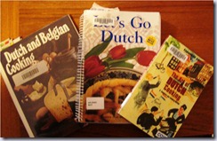 I had a brainstorm to expand my recipe file back in Maastricht. King County’s library system is fantastic at finding and delivering books to the local branch, so I put them on the hunt for Dutch cookbooks. They came up with three good ones, pictured, and I copied a couple of dozen traditional recipes. The theory is that these will make good use of Dutch ingredients and cooking methods. I’ll post the outcome.