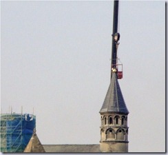 The first task was to hoist a workman to clean the cross on top of the northern turret.