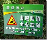 Prose: Its surprising that in a globalized and connected world, translation accuracy still lags so far behind in China. The mistakes say a lot about Chinese grammar and syntax, though, so there are lessons even amidst the noise. The sign at the right appeared on mountain peaks to discourage visitors from walking over the cliffs.