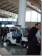 Most of the police that I saw were in intersections, managing traffic, and in airports. One night, a 20-something on a scooter grazed a pedestrian: the police drove in, stood him next to his motorcycle, took a snapshot with a cellphone, then hustled him into a patrol car without hesitation or discussion. Efficient, silent, surprisingly subtle.