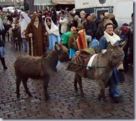 It’s a fun event to watch: the brightly dressed marchers mingle with sheep, horses, and donkeys, and the final (portly) King appears astride a (two-humped) camel. This gets lots of ooh’s and ah’s from the kids as the animal sways along the narrow streets o the old city.