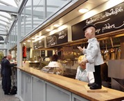 - Admire the picture of the Beach (I prefer the overhead of the labyrinth garden at the other H-gate). Envy the man who paid extra for early boarding, who gets a seat and a newspaper.
