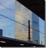 Changing trains in Brussels Midi at sunset. I take a business phone call from Seattle, they joke that I’ve got more phones than Jason Bourne. Little do they realize that I’m standing in a station with an earbud hanging, imitating the Waterloo sequence. The Zuidtoren catches the colors, a pillar supporting the sky above the train station.