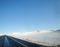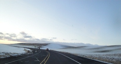 Fortunately, the roads never got beyond wet and a bit icy: the advisory for chains was probably unnecessary. I swooped through Ellensburg at noon and was off across the cold scrublands beyond. 250 miles still to cover, but the snow held off until the last 75 as I pulled off onto country road past Ritzville.